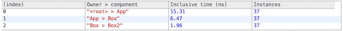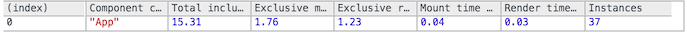Os tempos “exclusivos (Exclusive)” não incluem os tempos necessários para montar os componentes: processando props, chamando componentWillMount
